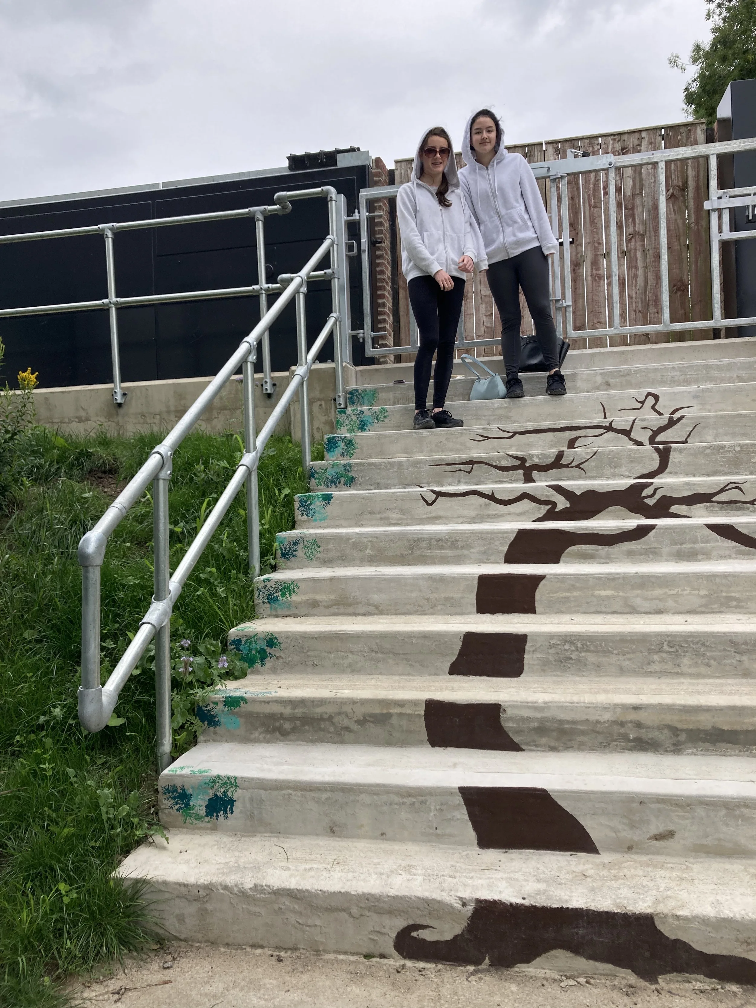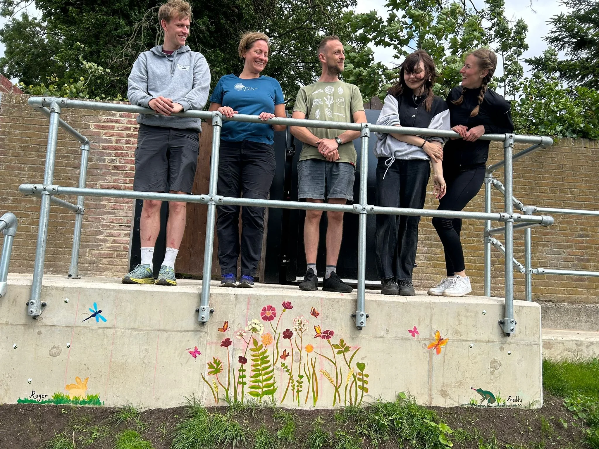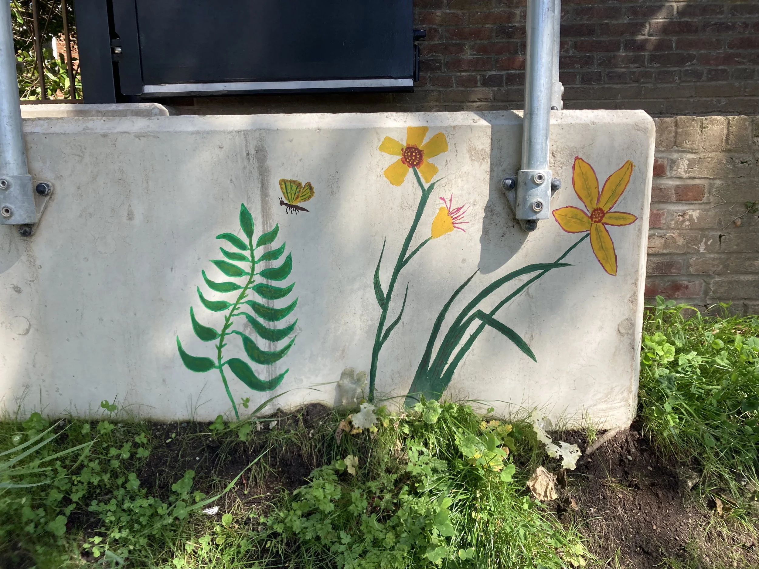 Clara had discovered our riverbank efforts and offered to lead a small team of Systra volunteers to improve the very stark concrete appearance which now accompanies the new floodgate walkways and steps. The team worked for a day and left us feeling very inspired to continue the artwork which they produced.